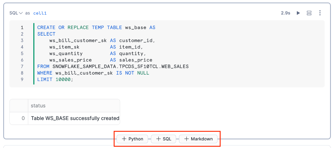 Snowflake Notebooksは、Snowsight上で利用できるセルベースの対話的な開発環境です。