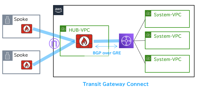 Spoke間の通信にはADVPN Shortcutを使用してHUBを経由しない直接通信を行います。