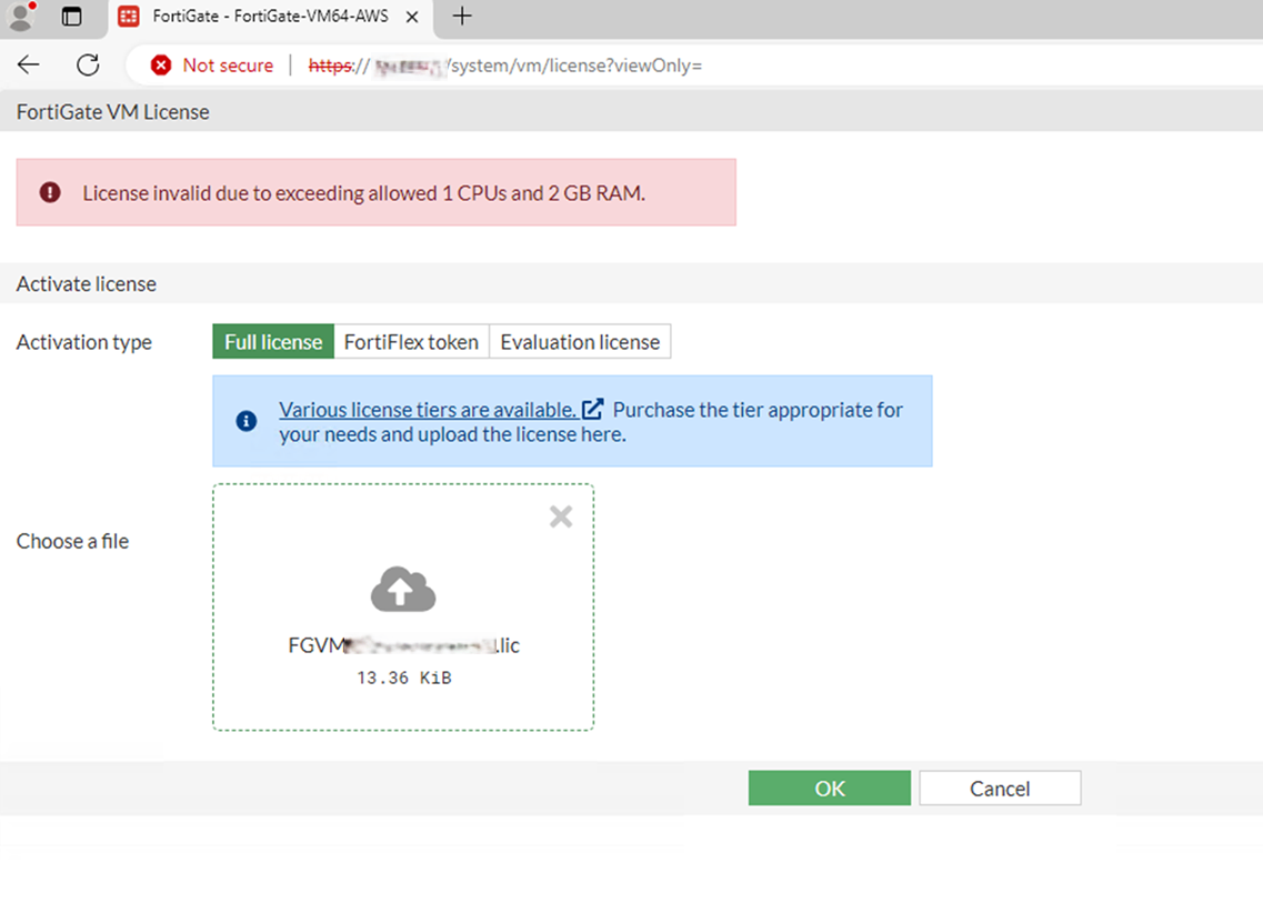 初回ログイン時はusername=admin、password=<instance-id>となっています。ログイン後すぐにパスワードの変更が必要です。 - (BYOLの場合)ライセンスをアップロードする