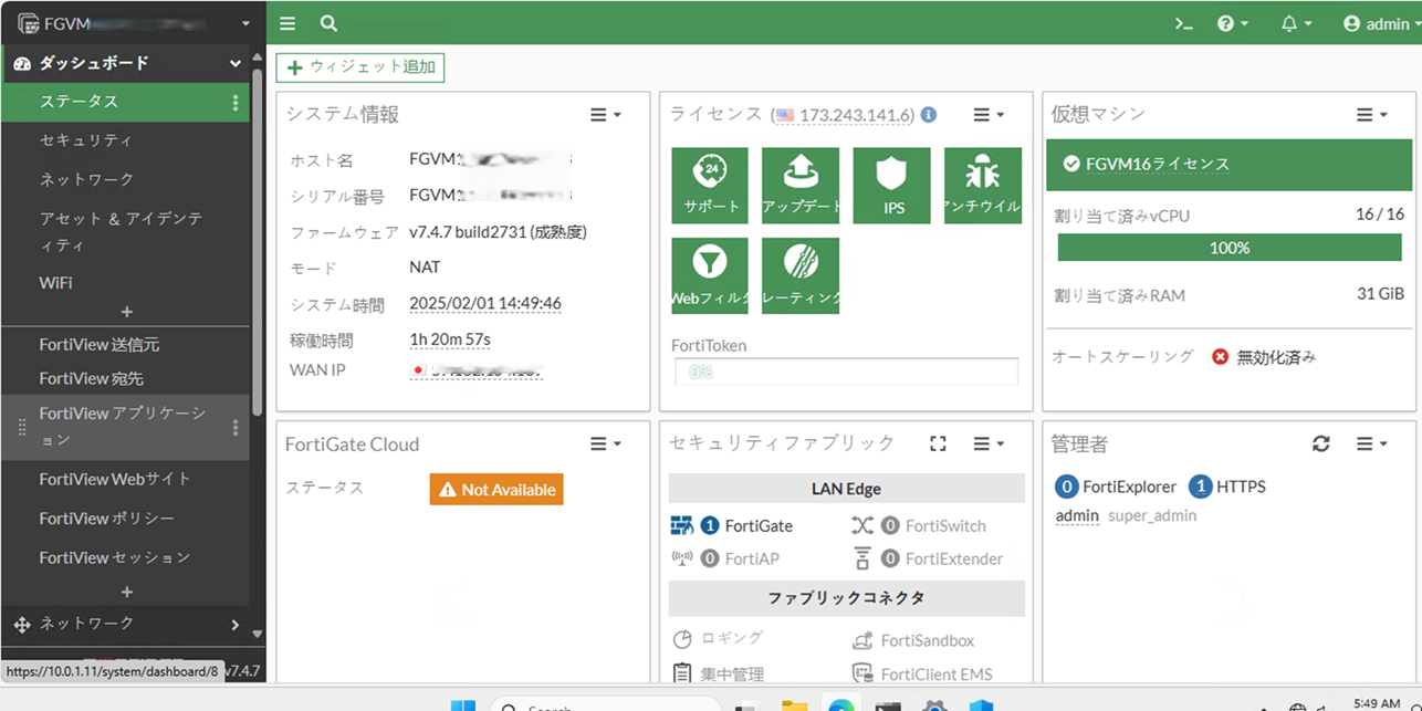 - FortiGateVMのGUIにログインする