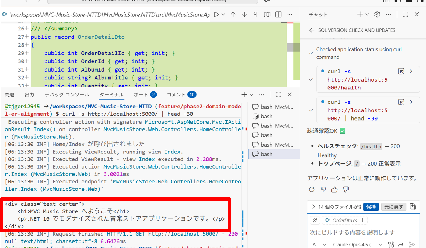 結果としては、時間内にWebのUI表示まではたどり着けませんでしたが、ビルドは成功し、curlによるトップページの疎通も確認できました。