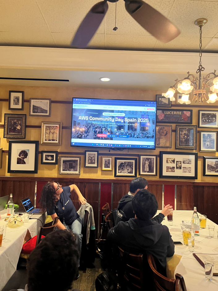 NTT DATA SpainのAWS AmbassadorであるIreneより、AWS Community Builderとしての活動紹介が行われました。Ireneは、スペイン・バルセロナを中心としたAWSユーザーコミュニティの取り組みについて紹介し、コミュニティ活動がエンジニア同士の学びや成長の場として果たしている役割を共有しました。