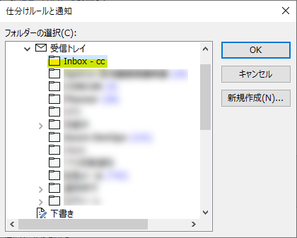 そうしたらCCメールを保存するフォルダーを(必要に応じて作成して)選択します。
