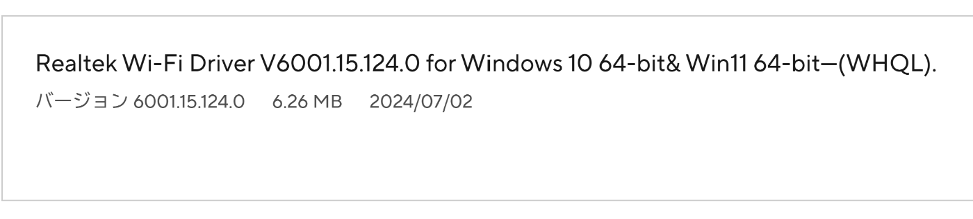 Realtek Wi-Fi Driver V6001.15.124.0 for Windows 10 64-bit& Win11 64-bit---(WHQL). もある