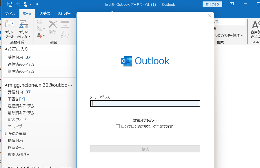 Outlookデスクトップアプリで配布リストへ所属する個人アカウントでサインインする