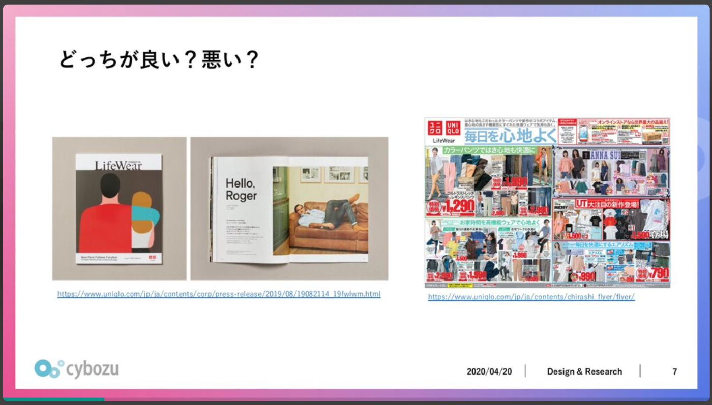 - 自明な間違いじゃない限りデザインの方向性の良し悪しはコンテキストに依存するよね