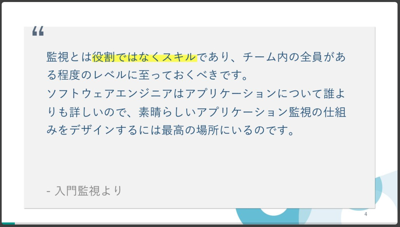 - 数年後には「Observability 入門」みたいなタイトルになって内容もそっち方向になるんだろうか