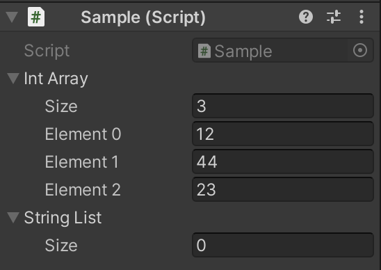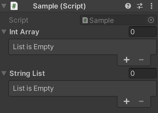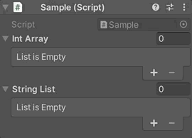 これを適当なGameObjectにくっつけてインスペクタを見てみると、このように見慣れたReorderableListが。