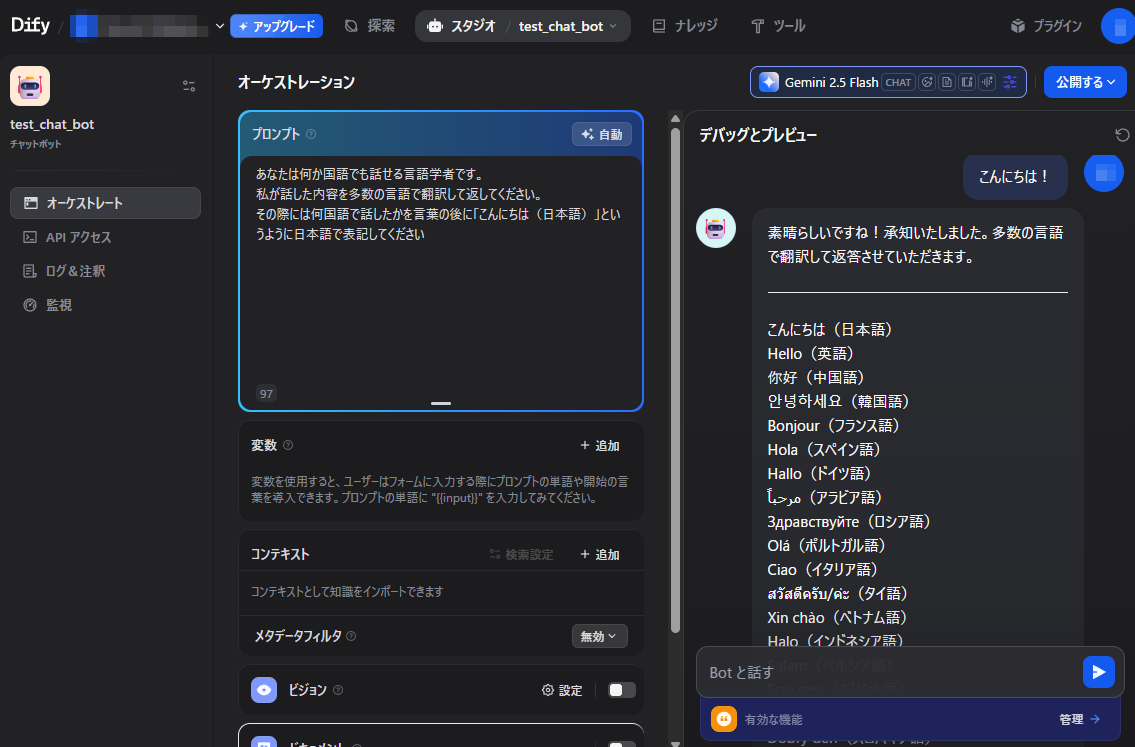 - Difyはプロンプトを書くだけでチャットボットが作れる
