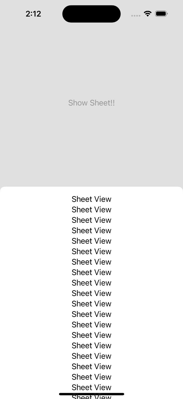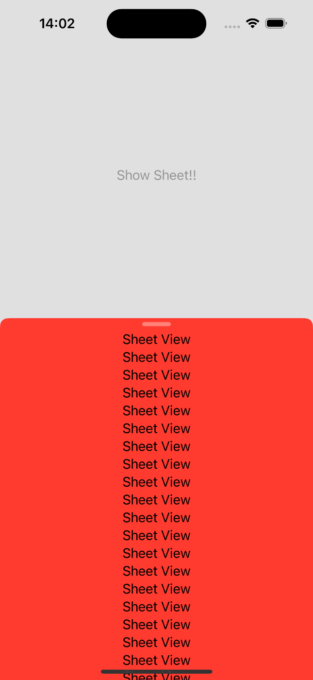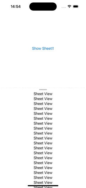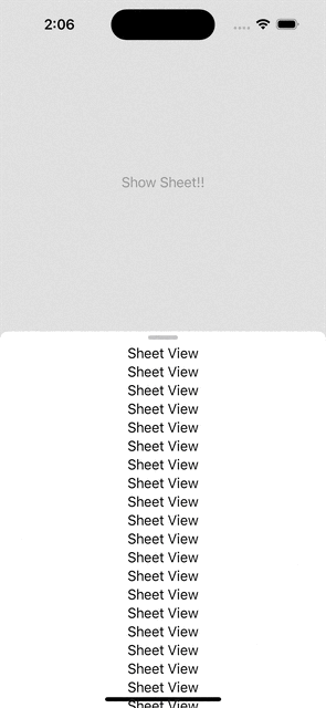 シート画面内にScrollを実装している際に挙動が変わり、デフォルトではスワイプ動作でシートサイズが変わり、最大のサイズまで達したらスクロールできますが.scrollsを指定するとスクロール動作が優先されるので最大のサイズに達せずともスクロール動作を実行することができます。(シートサイズの変更はドラッグインジケーターで行えます)