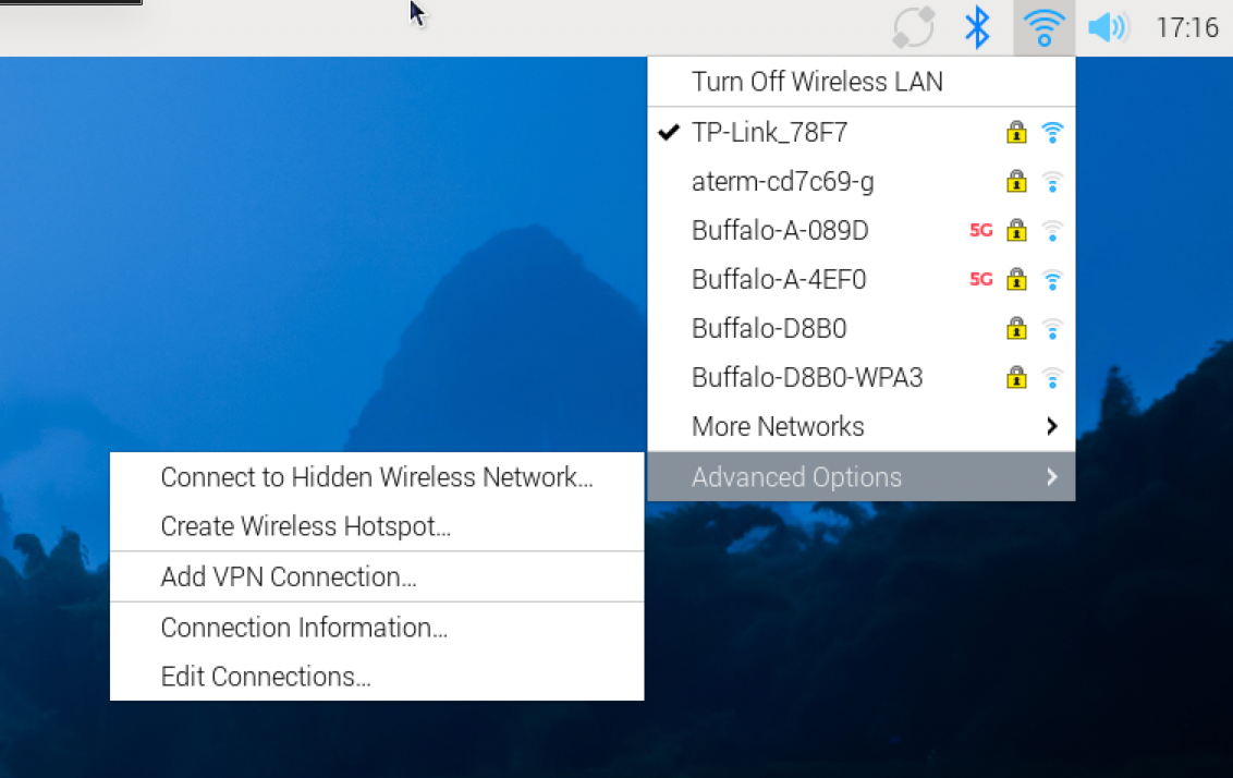 右上のWi-fiマーク > 追加設定 > Edit Conections...を押します.