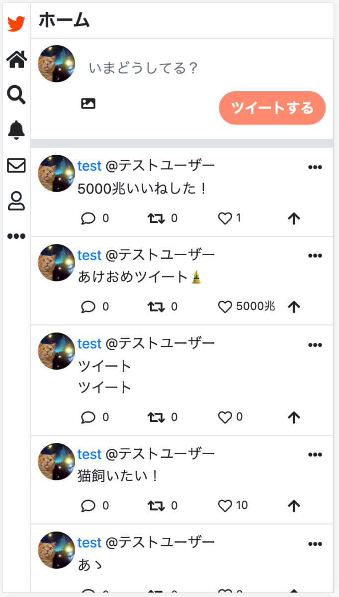 - 出来ること:アカウント登録・ツイート・リツイート・返信・いいね