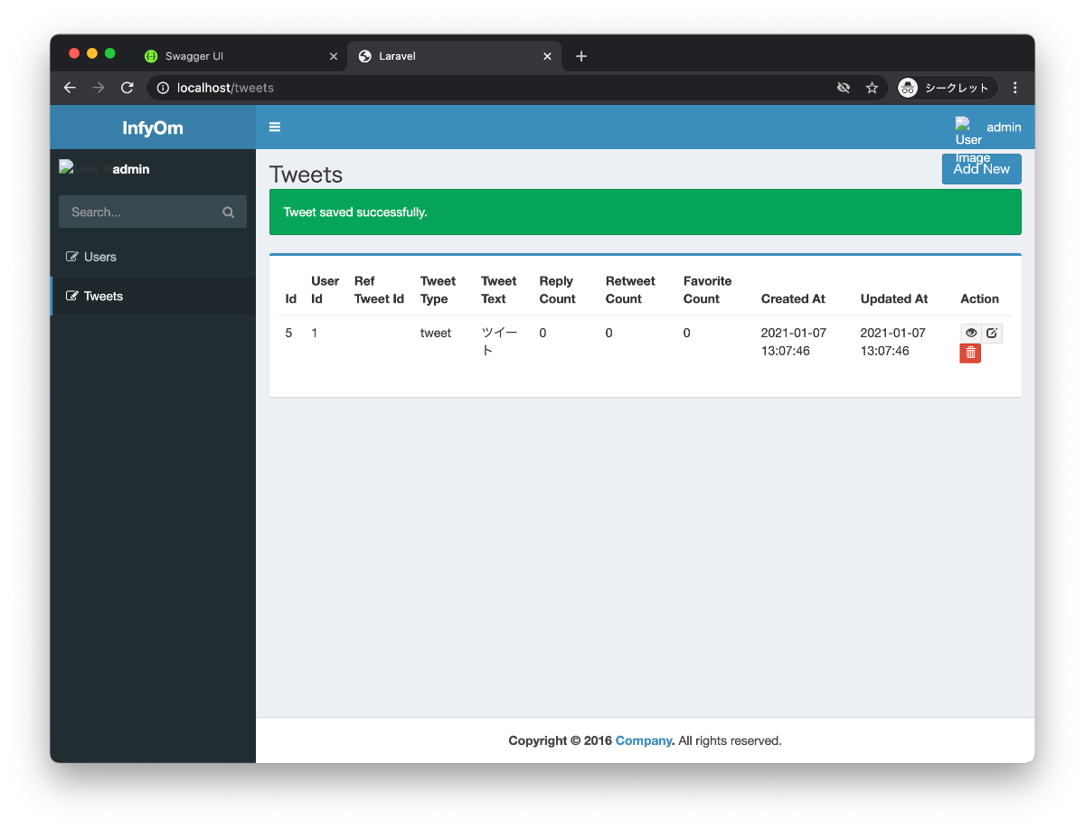 という事でLaravel-generatorを使ってtwitter風サイトを作ってみました