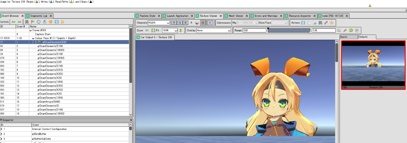 いやこれマジ何が起きてるの。。?RenderDocで頂点を見ると、球状に纏まっていることがわかる。