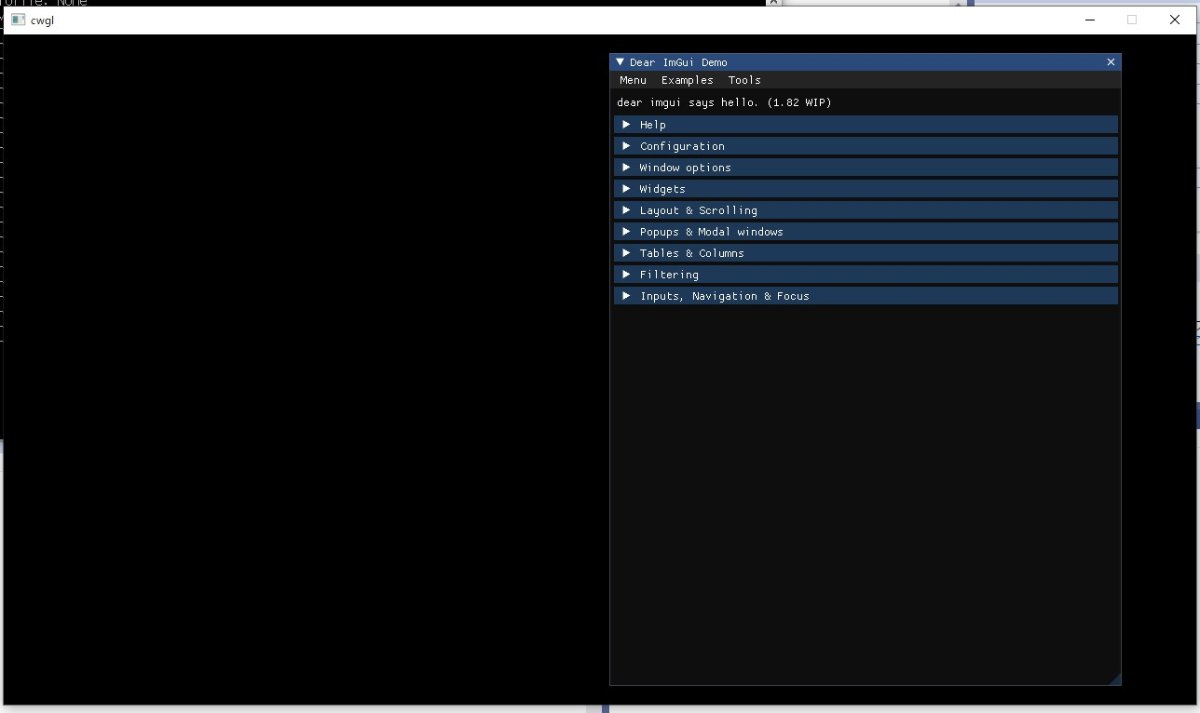 ... 前々から動かしてるじゃん というのは置いておいて、imguiを直接C-WebGLの上で動作させることにした。色々なツールをこの上で実装していくことになる。