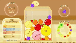 点数はフルーツを落としただけでは増加せず、フルーツ同士をくっつけてより大きなフルーツに変化させないと増加しない。