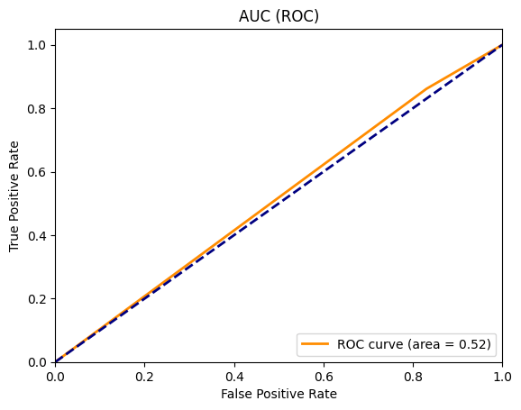 False Positive RateをY軸にTrue Positive Rateをとっています。 - 下面のAUC面積が1に近いほど良いモデルと言われています。