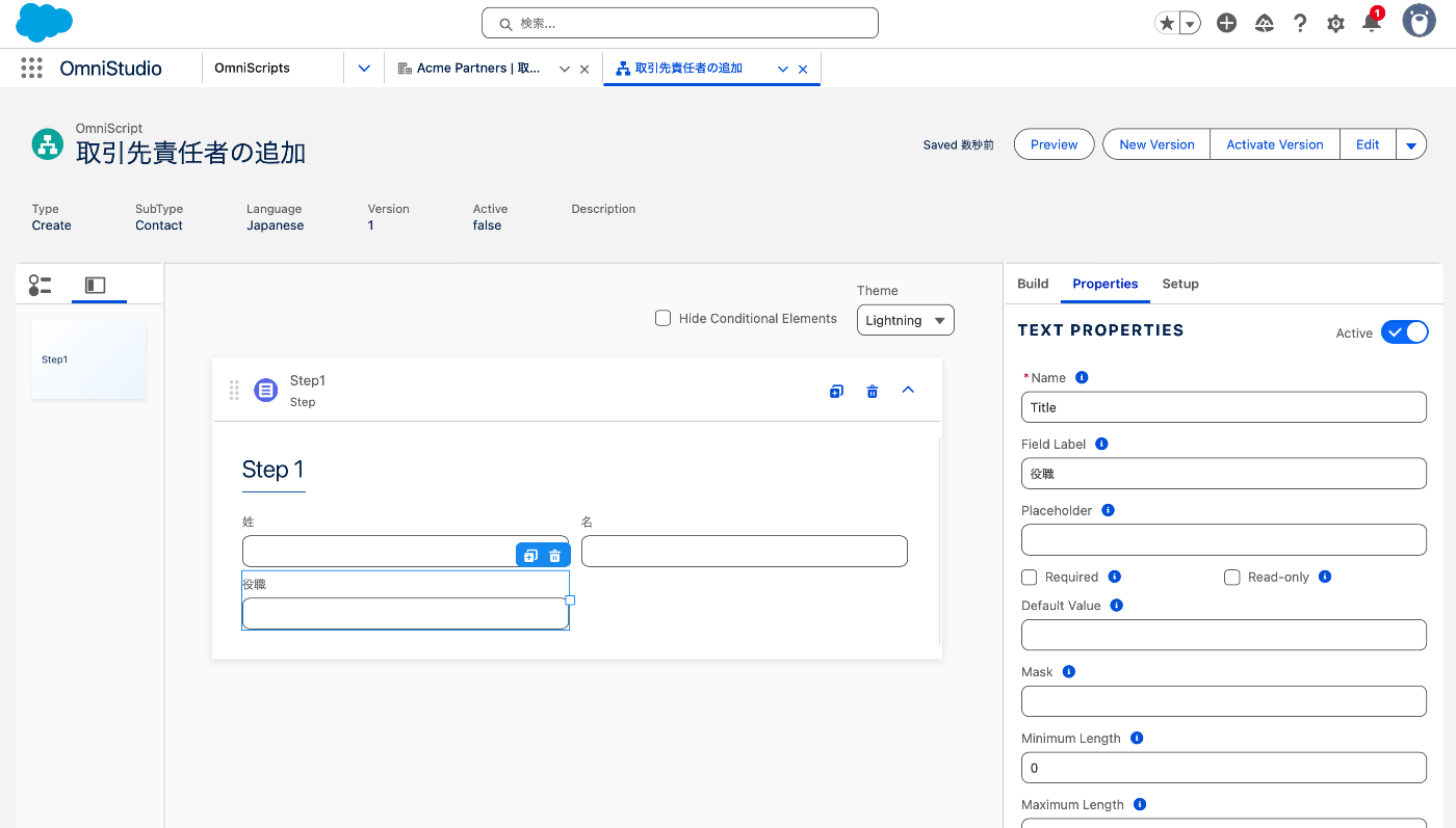 正しく動作することを確認したら、Activate をクリックして、OmniScriptを実際の画面で使用できるようにします。