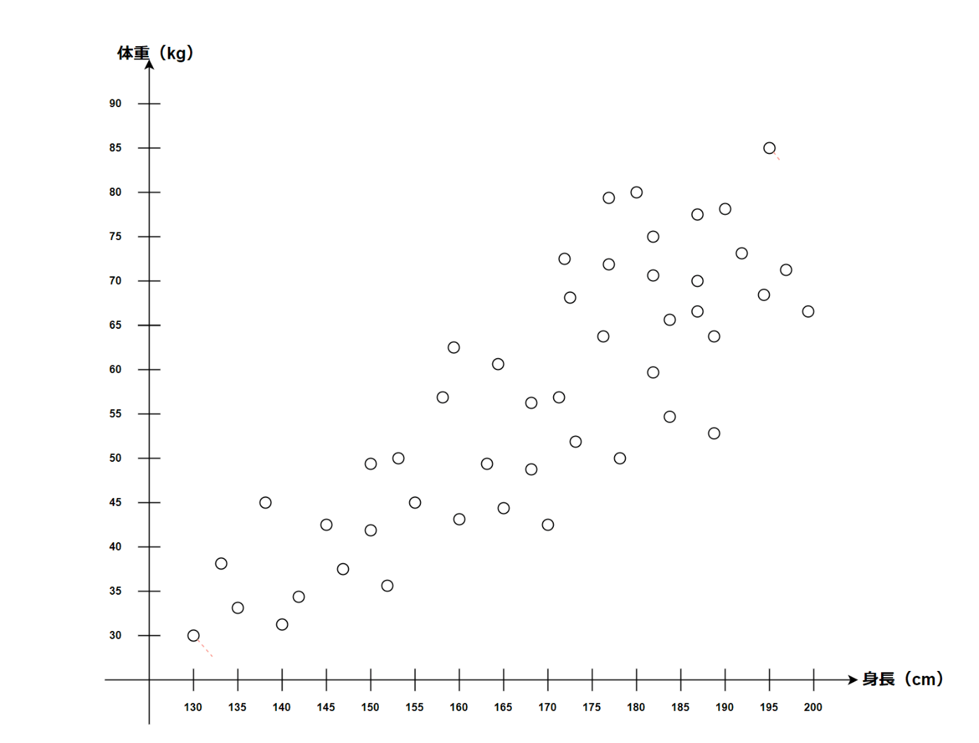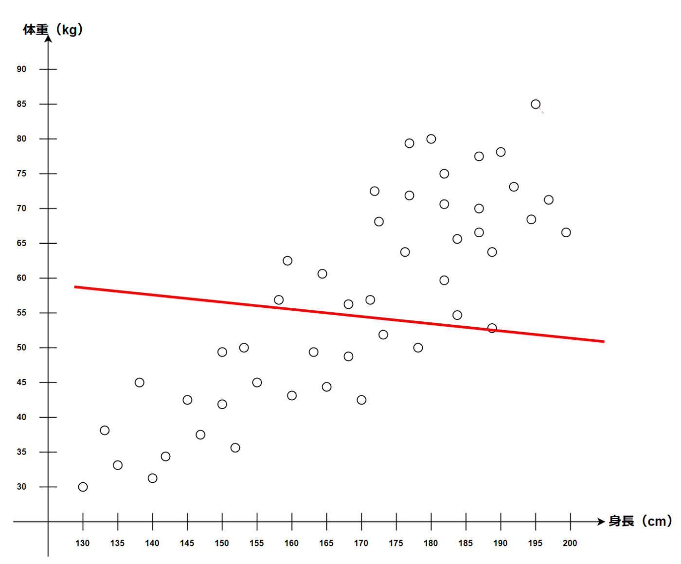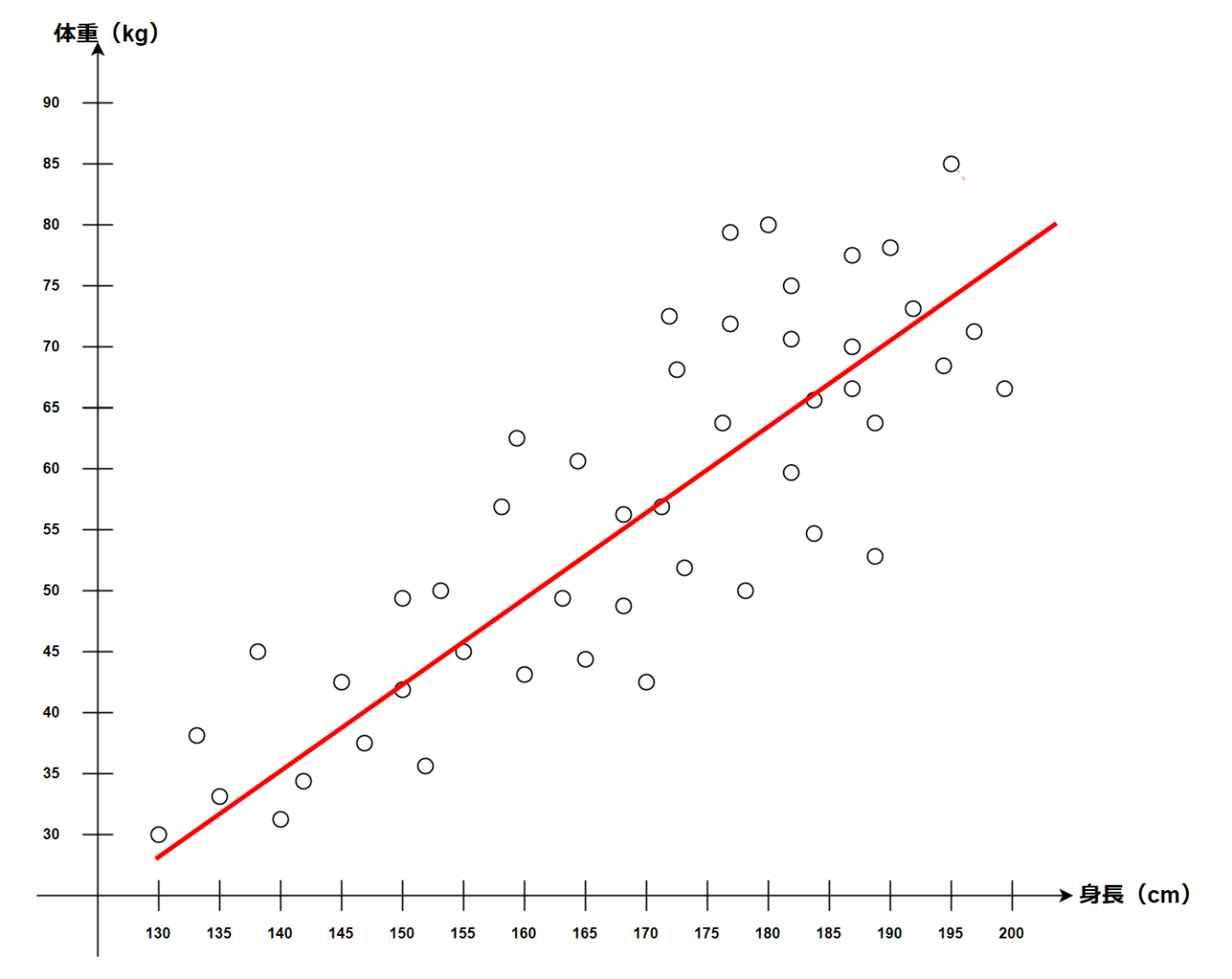 簡単だけど身長と体重に関する以下のようなデータがあったとする。