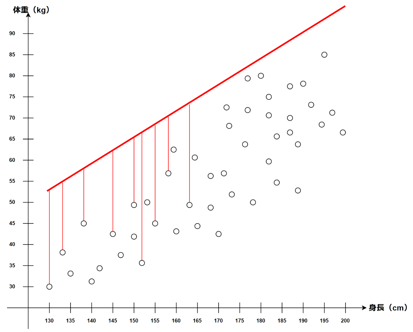 明らかに適切な直線ではないことが分かる。