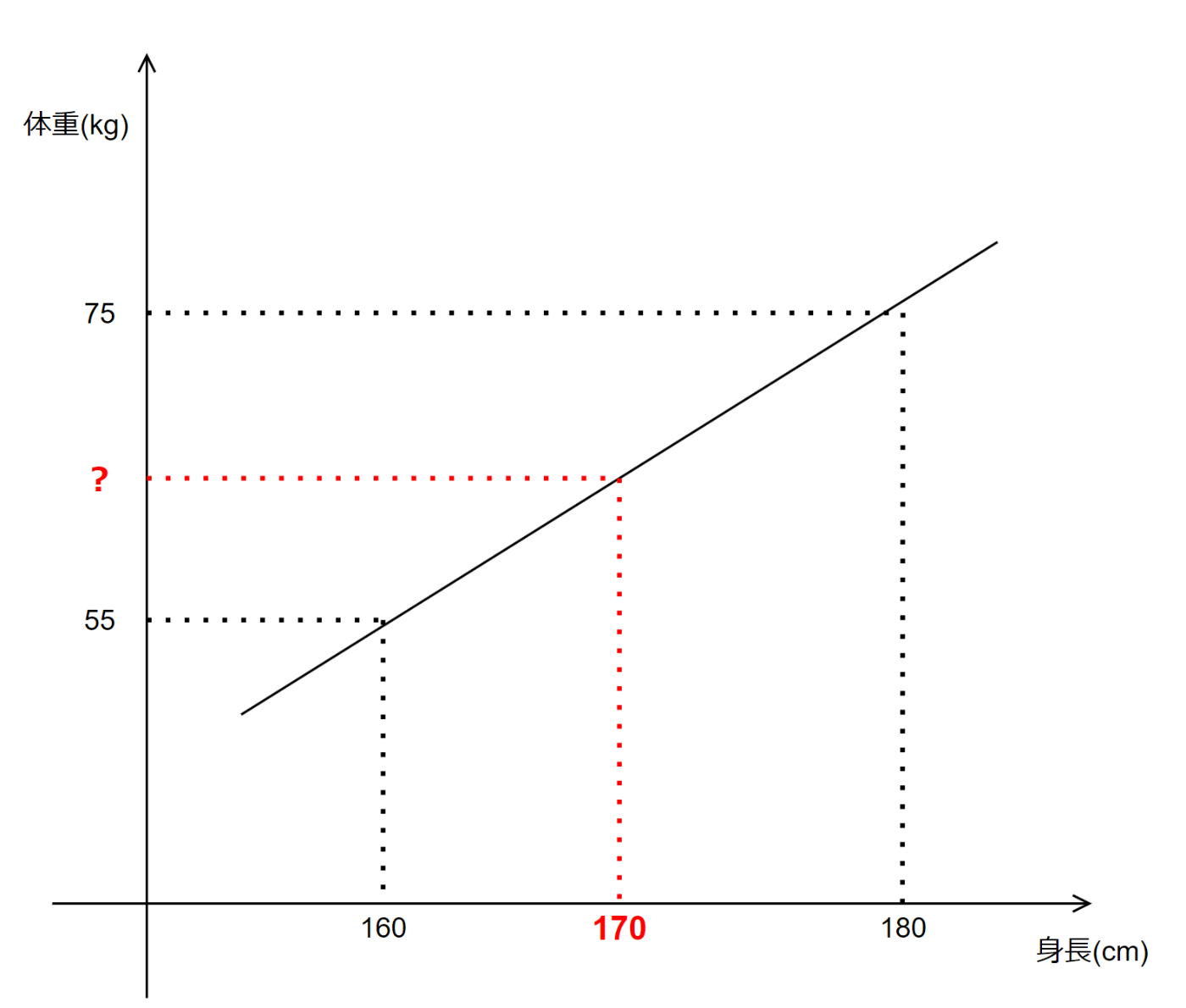 このような直線が求められた状態であれば、170cmという入力データを与えることで、出力を予測することが出来る。