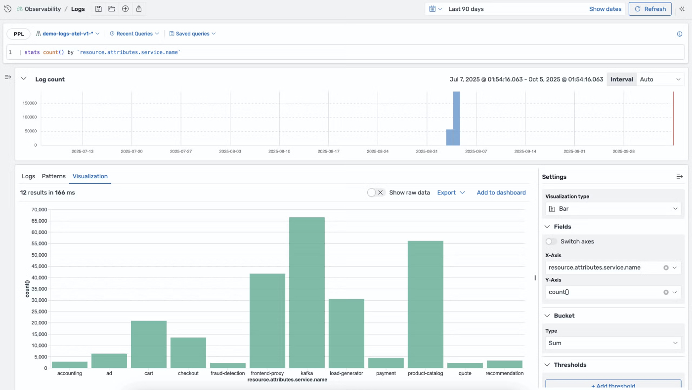 OpenSearch 3.3では、新しいtimechartおよびbinコマンドを導入しています。timechartコマンドは柔軟なスパン制御で時間間隔ごとにデータを集約し、binコマンドは数値データを範囲またはバケットに自動的にグループ化します。時系列パターン分析とデータ分布モデリングがPPLクエリ内でよりアクセスしやすくなり、ユーザーはクエリ操作を通じて直接トレンドと外れ値を特定できます。