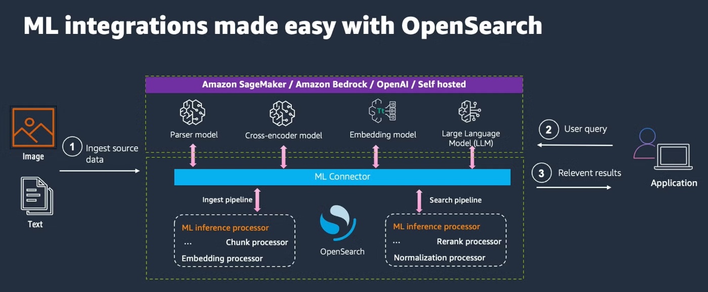 OpenSearchは、取り込みパイプラインと検索パイプラインから成るデュアルパイプラインアーキテクチャをサポートし、ML駆動の検索最適化のための堅牢なフレームワークを提供します。