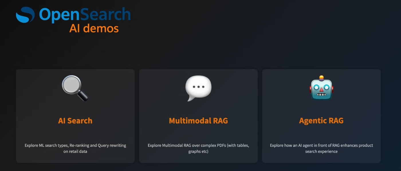 OpenSearch AIデモは実践的な実験と学習のために構築されています。開始方法は以下の通りです: