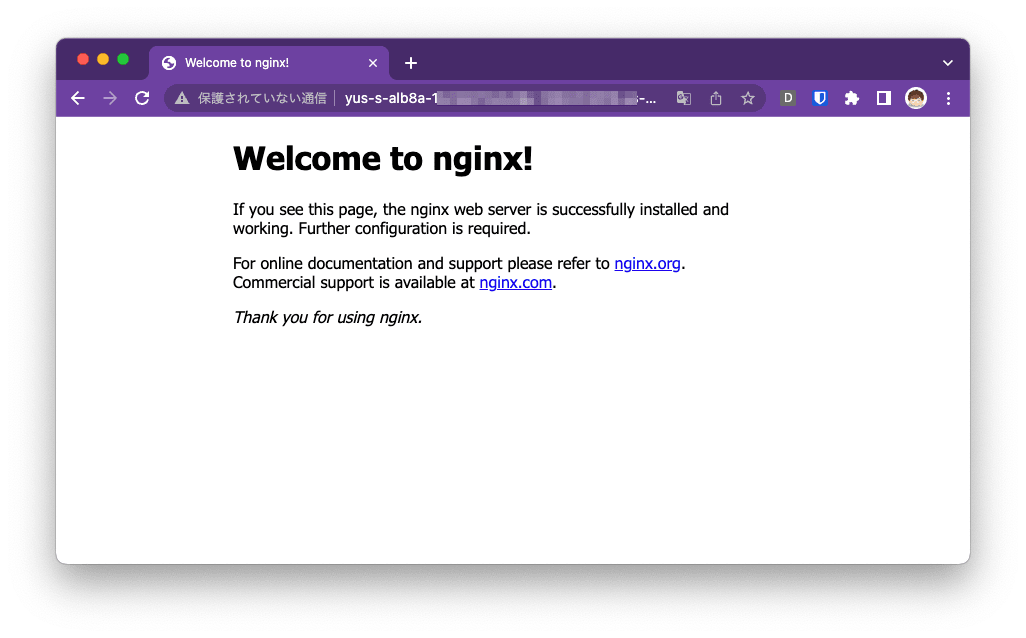 デプロイが完了したら、ALB が発行した DNS でアクセスすることができます。