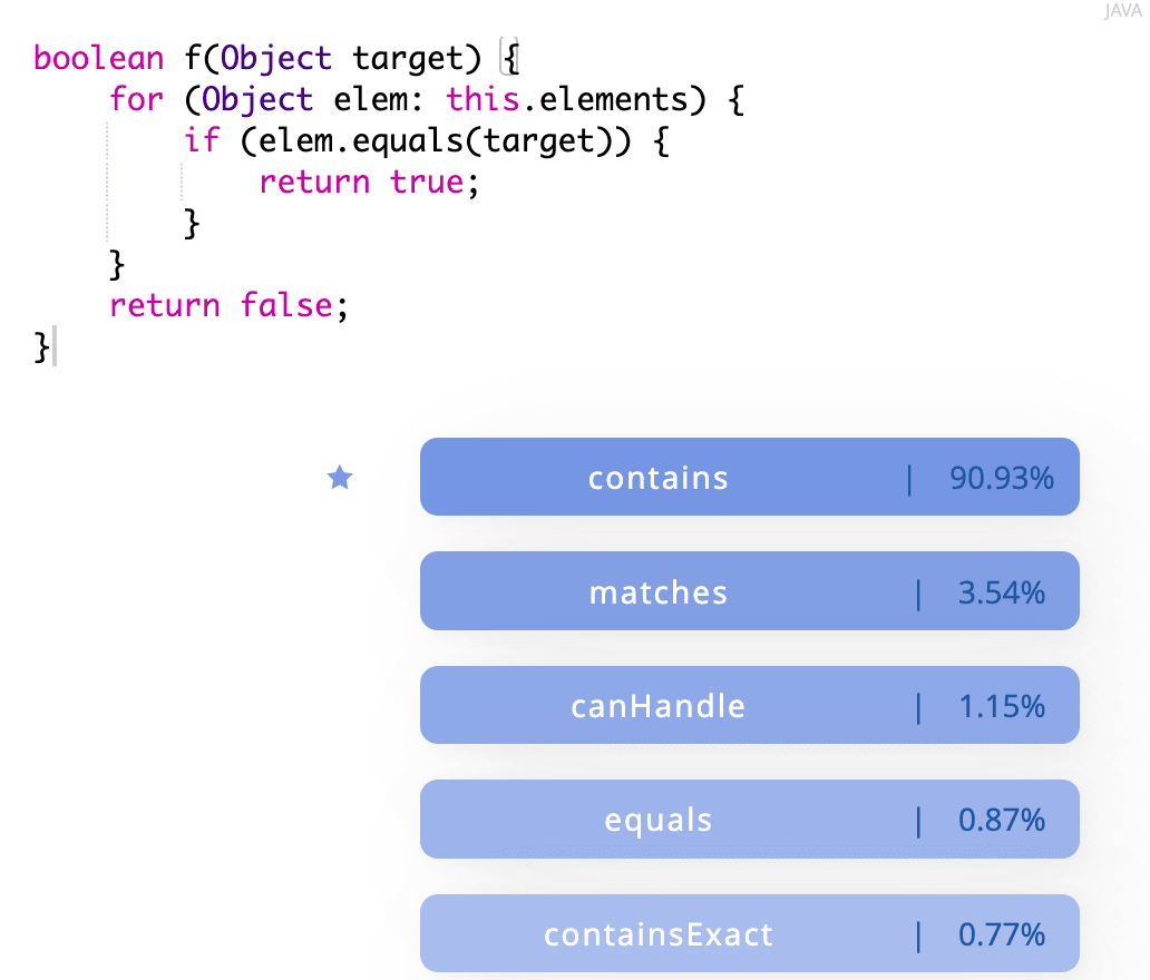 上記の結果からも分かるように,今回の例題のコードスニペットには,contains というメソッド名が適しているということがわかりますね!🎉