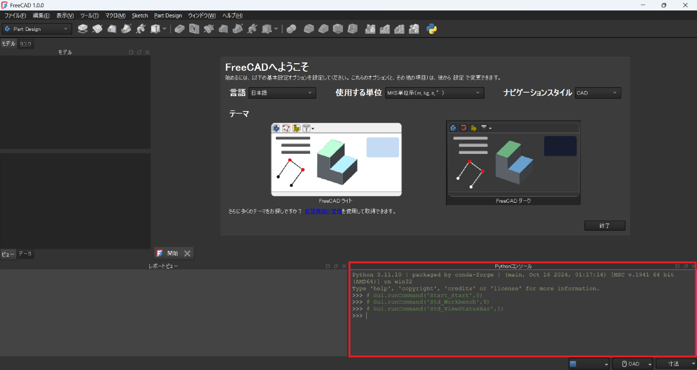 今回はPythonスクリプトを直接コンソールに記述(コピー&ペースト)してモデリングしていきます。