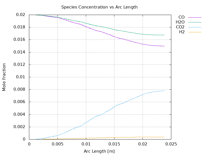 reactingWall)において、ガス種が触媒表面に吸着・反応・脱離する過程を解いています。 -