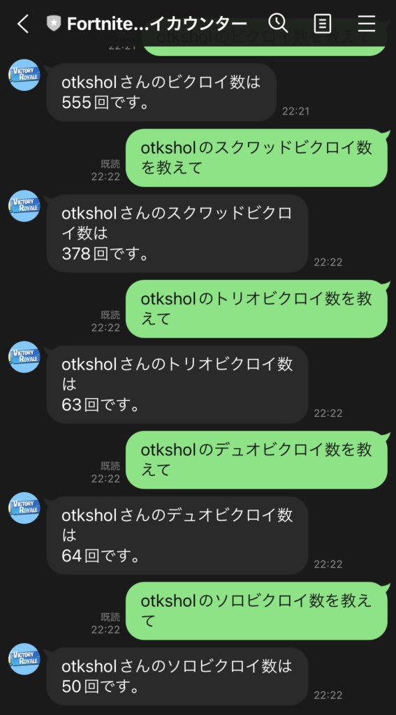Fortniteのビクロイ数を教えてくれるLINE BOT作ってみた
