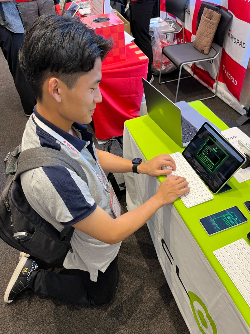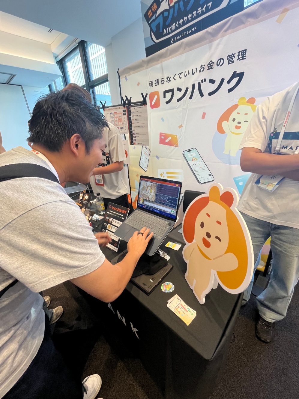 スマートバンクさんのブース!借金で生計を立てるプロンプトを入力中の弊社CTO