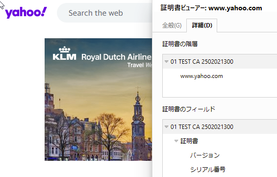 TLS ディクリプションされているブラウザーでルート証明書の切り替わりを確認します。