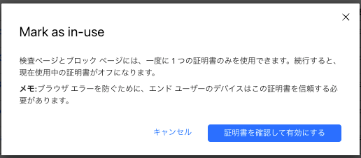 Confirm and turn on certificate します。