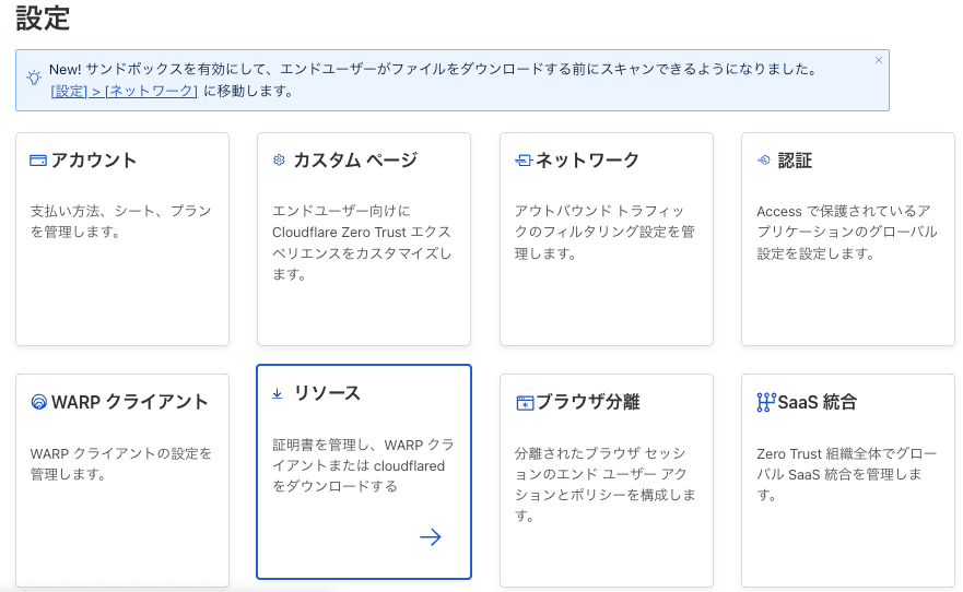 設定 > リソース