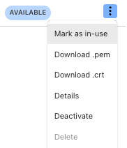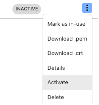 INACTIVE 状態の証明書から Activate を選びます。