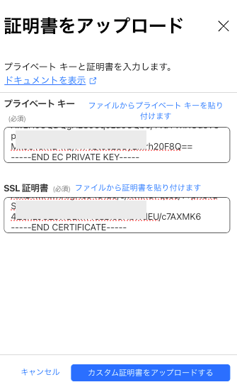秘密鍵と証明書を投入します。