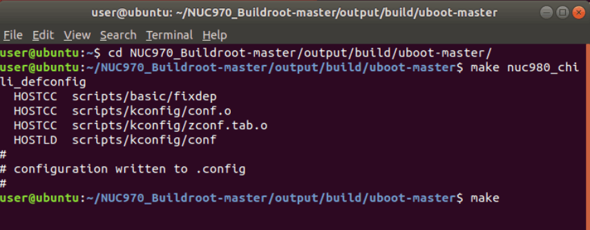 NUC970_Buildroot-master/output/build/uboot-masterフォルダに移動します。