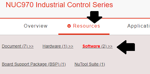 nuvoton社のホームページから、Products → Microprocessors → ARM9 MPUs → NUC970 Industrial Control Series とたどります。