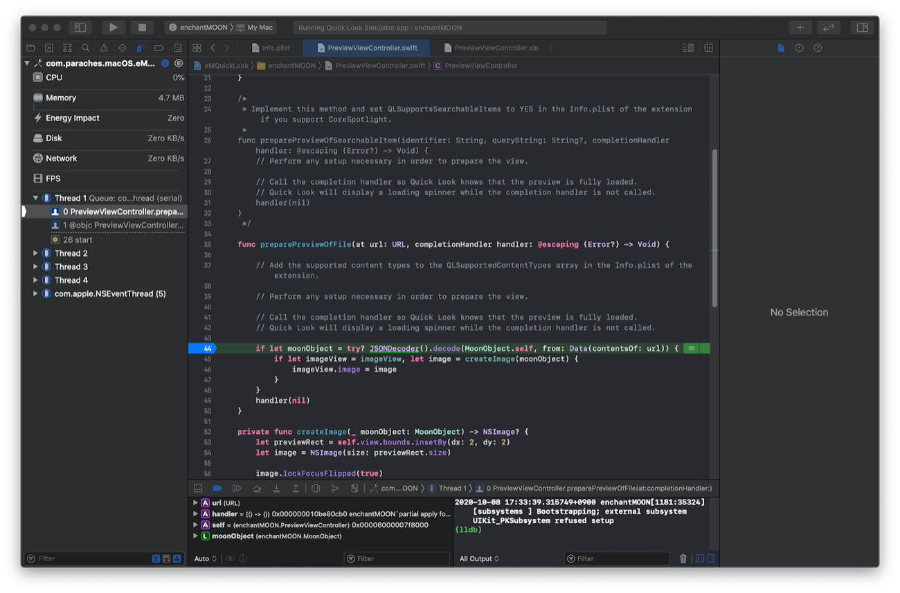 Quick Look 機能拡張のデバッグ