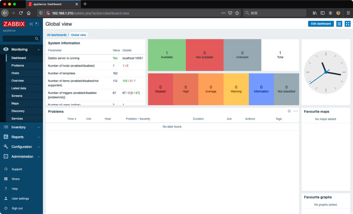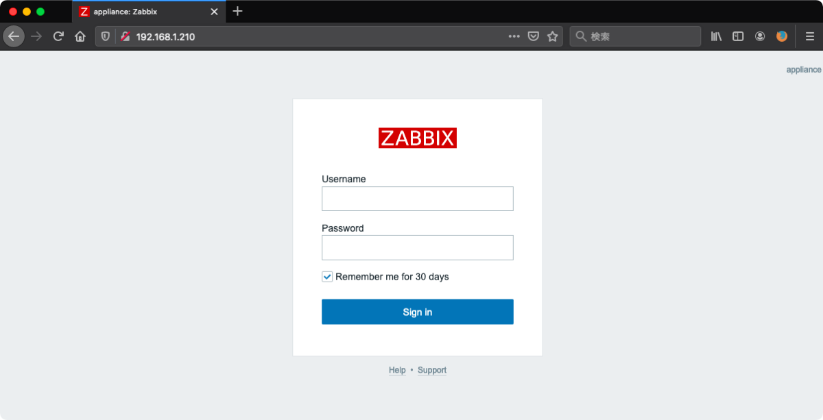 IPが無事変更されたところで、ブラウザからZabbixサーバーのIPを入力して、Zabbixのコンソールへアクセスしてみます。