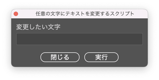 var win = new Window("palette", "任意の文字にテキストを変更するスクリプト", [200, 150, 480, 250]);
