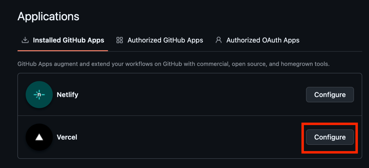 - 連携しているところにVercelがあるかどうかを確認。(初めて行う場合はここにVercelがいないかも)