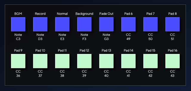 設定が終わると、後述の通りMIDIコントローラを通じて、ノート番号に紐づいた操作を実行できます。