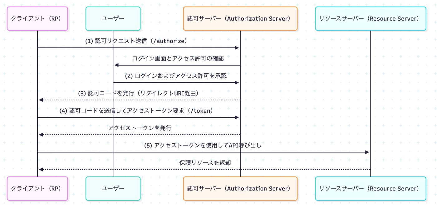 | Authorization Server | 認可サーバー | アクセストークンを発行するサーバー |