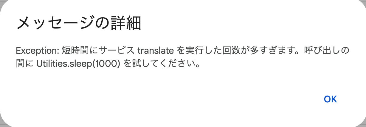 GASでスプレッドシートの文言を翻訳するときに translateのレート制限のエラーが出た場合は遅延を入れて対応する