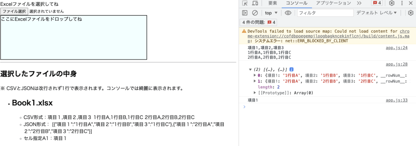 - SheetJSのXLSX.readメソッドでExcelの内容を取得