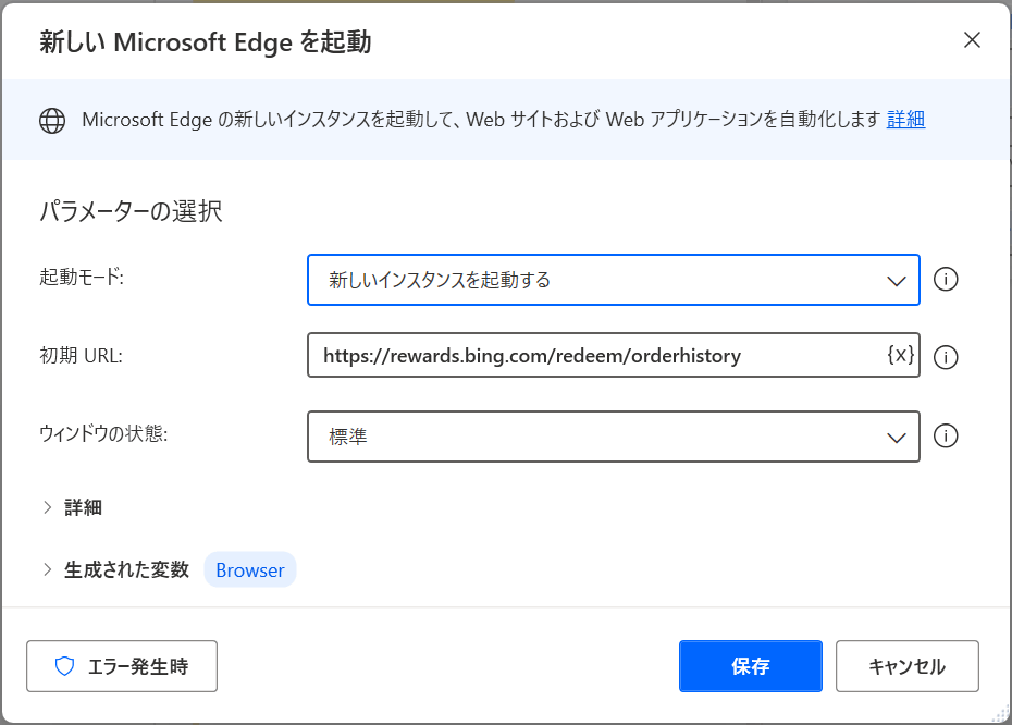 WebAutomation.LaunchEdge.AttachToEdgeByTitle TabTitle: $'''リワードの引き換え''' AttachTimeout: 5 BrowserInstance=> Browser